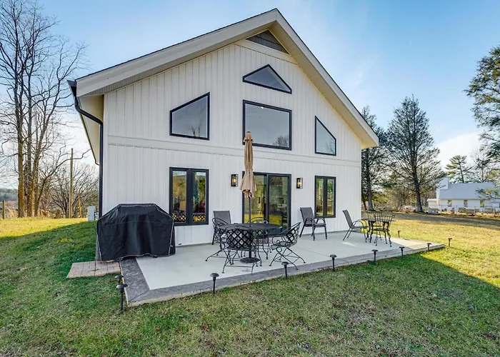 Situated 3.4 km from Prices Fork Historic District, Peaceful Farmhouse Retreat 6 Mi To Virginia Tech! Blacksburg villa invites guests to relax at a patio.